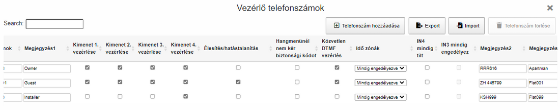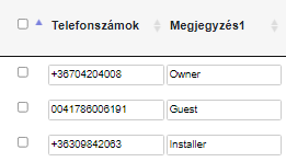 Vezérlőtelefonszámok mellett Megjegyzés1 oszlopban megadhatjuk ügyfelük azonosításához leginkább jellemző információt. (Pl.: szállodában tulajdonos vagy vendég stb...)